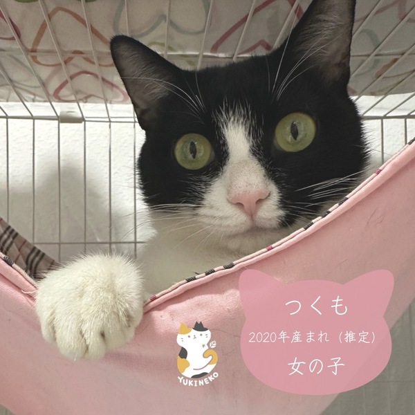 | 特徴(性格など) | :つくも 毛色:黒白 性格: 甘えん坊 体重: 4.3kg マイクロチップ装着: 済 飼養環境制限: 完全室内飼育 単身応募者: 可(条件あり) 高齢応募者: 可(条件あり) 初期医療処置 *3種、4種混合ワクチン済 *ノミダニ予防、内外寄生虫予防済 *ウィルス検査 済 |