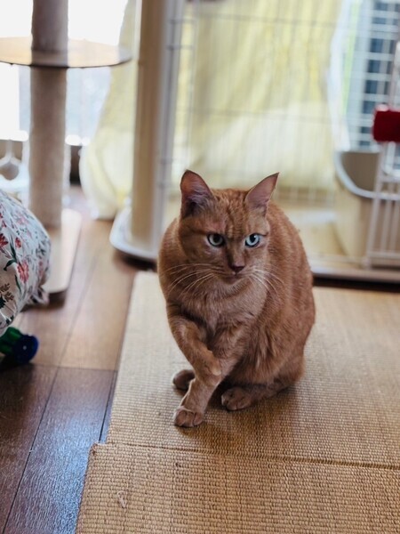 | 特徴(性格など) | とても人懐っこく、抱っこや添い寝もできる非常に甘えん坊な男の子です。小さなお子様や、他の猫ちゃんとのコミュニケーションも上手な子です♪ 保護した当時は、皮膚の傷以外元気な様子でしたが、2025年3月に突発的な右半身麻痺がみられました。 それから賢明な治療を行い、現在は少し右側に力が入らないものの走り回れるほど回復しています。 原因は脳腫瘍。又は脳梗塞と言われているものMRIを行っていない為確証はなし。 |