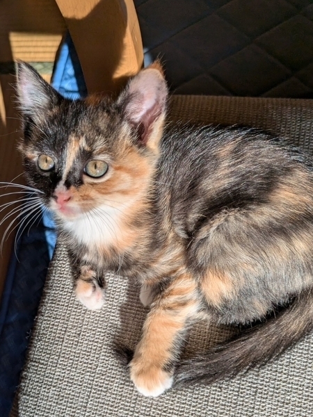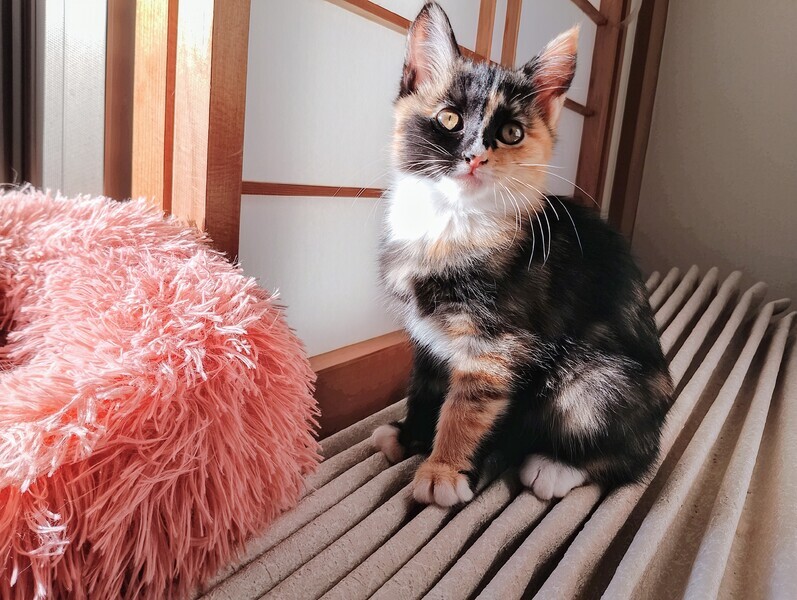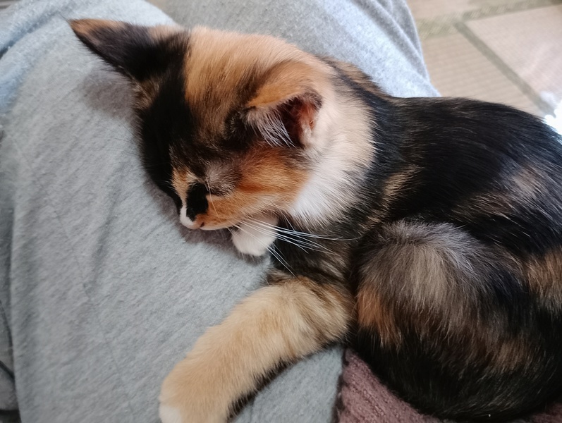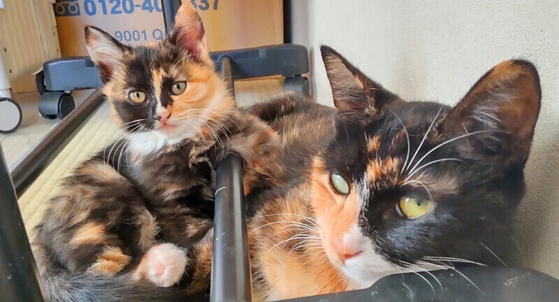 | 里親募集する理由 | 飼い猫同士が赤ちゃんを産んでしまい、飼えないとのことでママ猫と子猫の三毛ちゃんを保護しました。 | ||