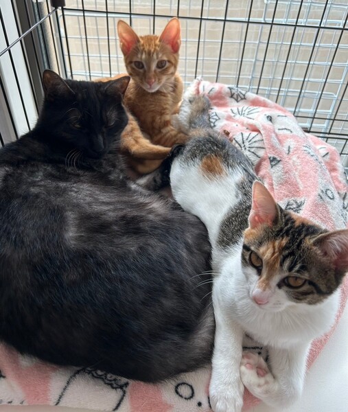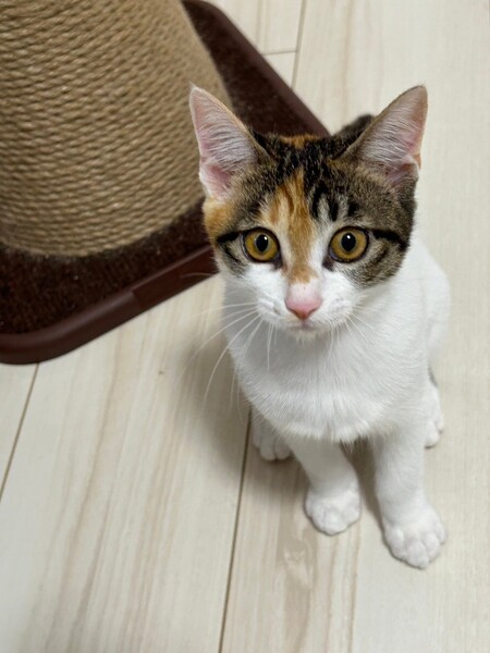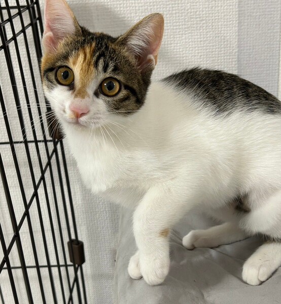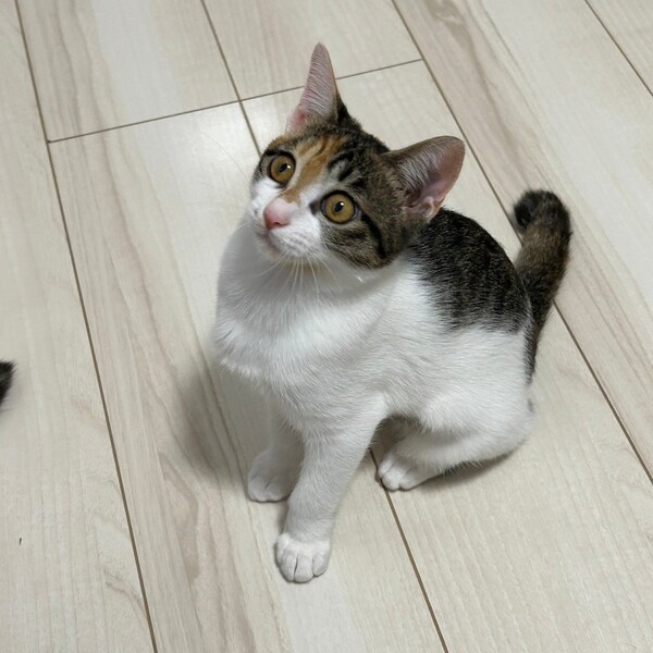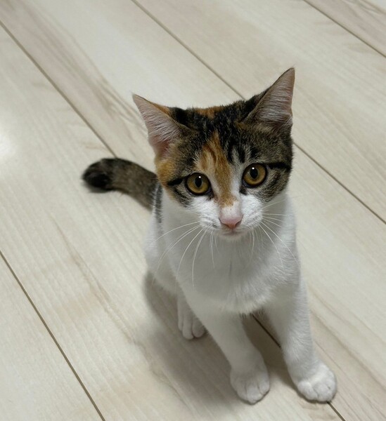| 特徴(性格など) | 2024.7.20生まれ(推定) 毛色:三毛 小柄な体型の三毛猫ちゃん。 身体は小さいけど、元気いっぱい飛び跳ねるようにして遊びます。 お膝の上が大好き。 人間とも猫とも仲良くできる優しい子です。 たくさん甘えさせてくれる里親さん募集中です。 |