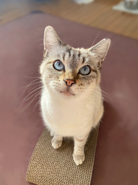 | 特徴(性格など) | 特徴 ・目の形と淡いブルーの瞳 ・シャムトラ柄 シャム系ですが、シャムMIXではなくシャムトラと言うようです。 よく見るシャムMIXは白っぽいベースに、両耳、顔、四肢、尻尾、体の色が濃いめのポイントカラーが入っているのをイメージされると思いますが、まろみは全体的に薄めです。マロン色がオシャレで可愛いです。 シャムトラ柄は日本で多い黒猫、キジトラ、茶トラと比べると珍しいと思います。 【まろみの様子はInstagramにて更新中】 Hasaki WanNyan Rescueアカウント https://www.instagram.com/hskwannyanrescue ID検索 hskwannyanrescue 性格 とにかく人懐っこく、人間が大好き! 初対面の私や家族にもスリスリしていました。 撫でられるのが大好きな子で、よくヘソ天してコロコロしています。 撫でるとすぐゴロゴロ言ってます。とても可愛くて癒されます。 現時点ではよくお喋りをします。何かアピールしているのかなと思います。 シャム猫(サイアミーズ)は、よく鳴く猫としても知られているそうです。 猫と犬のいるご家庭でも問題ないかと思います。 猫に対してはあまり興味がない印象です。(相性の問題もあるのかもしれません。) |