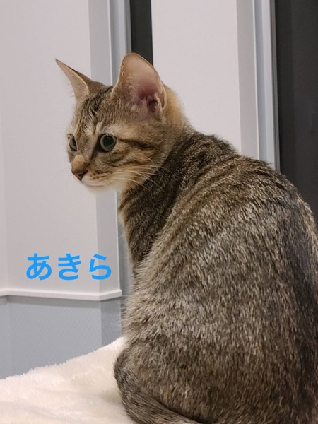 | 特徴(性格など) | 毛色:キジ 性格: 甘えん坊 体重: 2kg マイクロチップ装着: 済 飼養環境制限: 完全室内飼育 単身応募者: 可(条件あり) 高齢応募者: 不可 初期医療処置 *4種混合ワクチン済 *ノミダニ予防、内外寄生虫予防済 *ウィルス検査 済 |