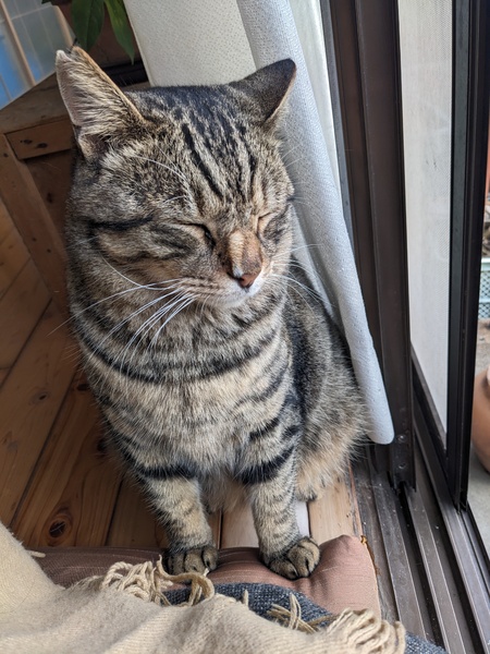 | 特徴(性格など) | なついていて抱っこもできます。 キジネコの元気な男の子。 |