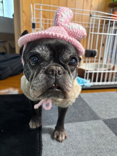 | 特徴(性格など) | ■特徴(仮の名前:あんみつ) フレンチブルドッグ ♀ 推定12歳 体重8.2キロ ■性格・暮らし ・穏やかで人が大好き、そばにいたい子です。 ・ペットシートの認識はありますが、失敗もあります。 ・お散歩はゆっくり歩きます。 ・他犬とも問題なく過ごせます。 ・耳が聞こえていませんが、日常生活に支障はありません。 ■今までに行った医療行為 ・避妊手術 ・混合ワクチン接種 ・フィラリア抗原検査(ー) ・検便 ・歯石除去 ・血液検査 ・マイクロチップ装着 ・乳腺腫瘍切除 ・陰部腫瘍切除 ■今後行う予定の医療行為 ・なし |