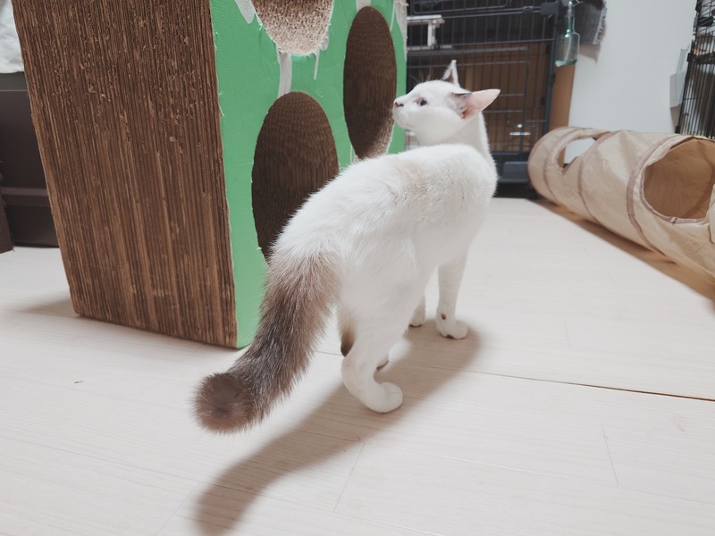| 特徴(性格など) | 2024.6.30生まれ(推定) 毛色:シャム系 ブルーの瞳が美しい・ちり。 しっぽは真っすぐに見えますが触るとグネグネと細かく波打っています。 ヤンチャで遊ぶの大好きな男の子ですが、マイペースに過ごしています。 ちょっぴり怖がりさんなので、慣れるまで抱っこはおててに力を入れて拒否ってきますが、慣れたら甘えん坊に変身です♪ |