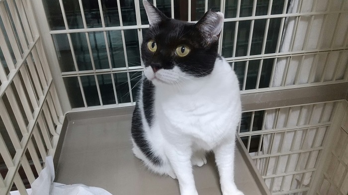 特徴(性格など) | ☆☆☆ご希望の方は、以下のアンケートフォームにご記入の上、送信してください☆☆☆ ねこ親希望アンケート→ http://chibawan.net/contactform_cat 【猫No】3888 【愛称】ムー子 【性別】メス 【年齢】推定4才(20/08頃生) 【毛色】黒白 【体重】3.9㎏(24/12/7現在) 【状態】不妊手術済・ワクチン接種済(24/12/7接種)・血液検査(エイズ陰性・白血病陰性)・マイクロチップ装着済・ノミダニ駆除済・トイレ躾済 【預かり場所】千葉県流山市 【日記】https://www.instagram.com/amoru_0709/Instagram 【経緯】千葉県動物愛護センター東葛支所より引き出し 【性格等】 まんまるな目と仮面をかぶったような顔が可愛い女の子です。 家猫修行を始めて日が浅いため、現在人馴れ修行中です。 おやつがあれば撫でることも可能ですが、不意に手を出すとシャーと猫パンチで元気に威嚇します。 人は大嫌いですが、猫は大好きらしく、預かり宅の先住猫(オス)の後をくっついて歩いて、うっとりしています。 ご飯がほしいときは可愛く鳴いたり、先住猫と一緒なら人のそばで寝たりと、人との生活に少しずつ慣れようと毎日頑張っています。 怖いけど人が気になるようで、部屋をヒョコリ覗いたり、いそいそ逃げ回ったり挙動不審な姿も可愛らしいです。 まだ積極的に甘えてきたりはしませんが、これから人と長い時間を共にすることによって、 ムー子がどう変わっていくか、気長に見守って頂ければ幸いです。 まだまだ成長中のムー子を見守り、彼女にとって心地よいと思える環境を模索し、一緒に楽しく過ごして下さる家庭を希望します。 移動のストレス等も踏まえ、預かり宅から車で1時間以内のご家庭を希望します。 生活の様子は下記のインスタグラムからご覧ください! 【備考】 歩行がヨタヨタすることがありますが、検査の結果に異常はなく、日常生活に支障はありません。 歯石がたまっており、すこし口臭がします。スケーリングするほどではないため、歯磨きおやつ等家庭でのケアに努めています。 【その他】 終生飼養、完全室内飼育、脱走防止対策、定期的なワクチン接種、毎日の健康管理、定期的な近況報告をお約束いただけるご家族からのお問い合わせをお待ちしております。 できれば、先住猫ちゃんがいるお家が、ムー子も安心して過ごせるかと思います。 |