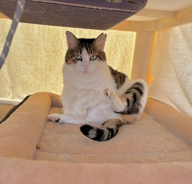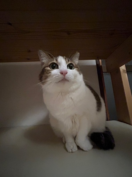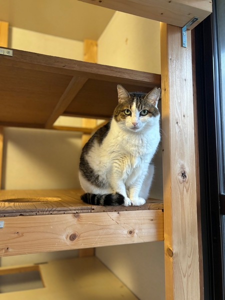| 特徴(性格など) | キジ白 中長毛 長しっぽのふわふわ女子です。 ツンデレな性格で、撫ですぎると甘噛みしてきますが、穏やかにのんびりしている事が多いです。たまにおもちゃで遊びます。巻き爪になりやすいです。 |