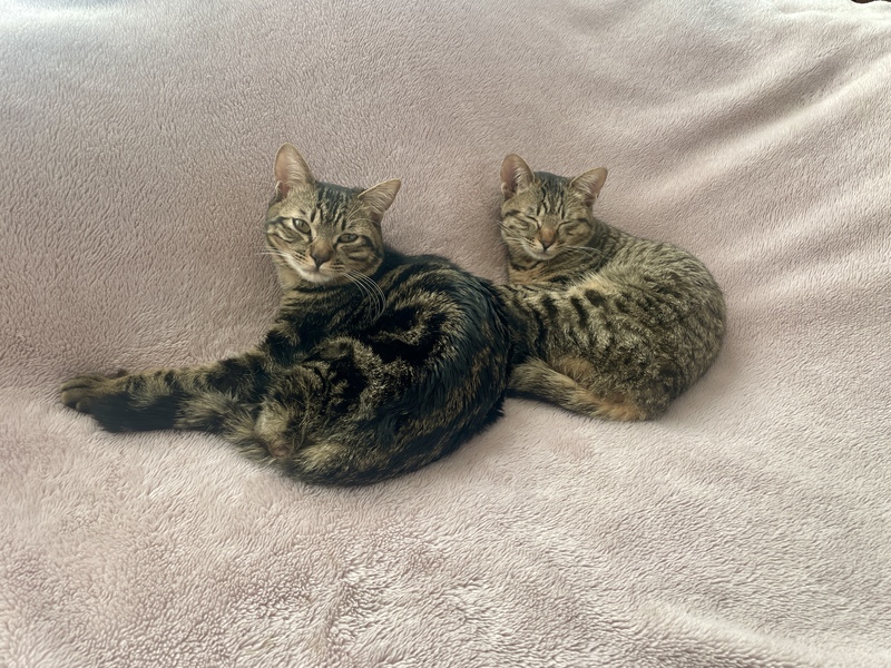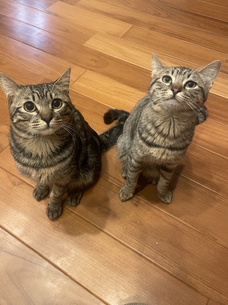 | 特徴(性格など) | どちらもとても人懐こくて甘えん坊で、いつも近くにきてくっついて寝てくれます。 男の子のほうは初対面の人にもスリスリする子でヤンチャで食いしん坊です。 女の子のほうは比較的控えめな性格ですがより甘えん坊です。 車は平気なようで、キャリーの中で落ち着いていたり、車内でトイレもできます。 病院でも落ち着いています。 子供も平気です。 |