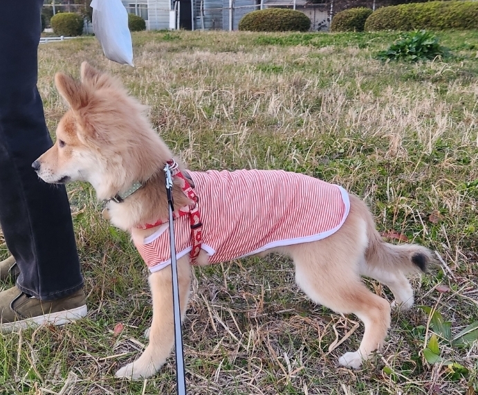 | 特徴(性格など) | 名前:クッキーちゃん 年齢:推定4ヶ月 (推定:2024年9月上旬産まれ) 性別:メス 体重:5.3キロ (1月上旬現在。) センター収容時:1.02キロ (10/21) 将来的には中型犬サイズになるかと思われます。 マイクロチップ挿入と登録済み 心音( 異常なし ) 検便( - ) 駆虫済み フィラリア検査:陰性 2種混合ワクチン 1回済み 10種混合ワクチン 2回済み ノミダニ駆虫薬投薬済み 膝蓋骨脱臼(パテラ)左右ともに無し 狂犬病予防接種済み 【実施予定の医療行為。】 適齢時期が来たら、避妊手術。 まだ怖がりな一面もある、クッキーちゃん。 女性より男性に慣れるまで少し時間がかかりそうです。 他の犬とは遊びたくて仕方ないようで我が家に居てる小型犬達みんなに 遊ぼ~!!って毎日誘ってます(*^_^*) オモチャも大好き♪ 犬用のおもちゃ箱から色々出してきては振り回したり、投げてあげると取りに走ったりと元気いっぱい!! 食欲旺盛で今は1日3回、子犬用ドライフードのふやかしを与えています。 トイレトレーニング中。 タイミングを見ながら声かけてあげてトイレシーツへ誘導してあげると行ける時もあります。 お散歩はまだ怖がって引っ張りが強く、停まってる車の下などに潜ろうとするので、 抱っこで音慣れさせながら人と車通りの少ない所だけ、歩かせながら練習中です。 大通りなどは苦手でパニックになって暴れることがあります。 車も大人しく乗れるようになってきましたが、 車酔いしやすいようでよだれやたまーに嘔吐しちゃいます。。。 お留守番と就寝時はゲージに入れています。 まだまだお子ちゃまなので、室内フリーで目を離して退屈になった時に 万が一の誤飲防止とメリハリをつける為に使っています。 現在、お座り・伏せ・待て・お手を練習中で少しづつ出来るようになってきてます♪ |