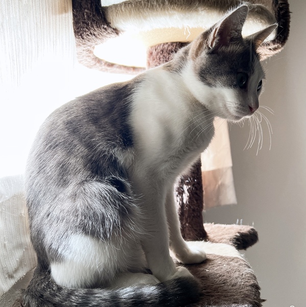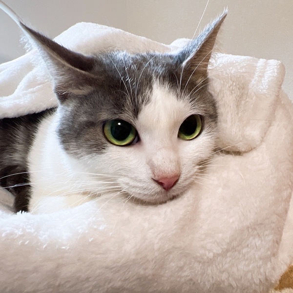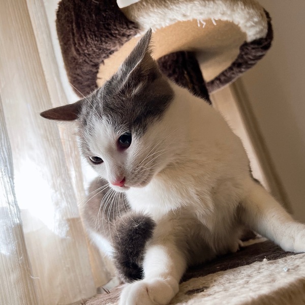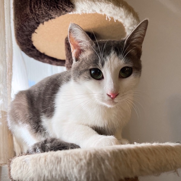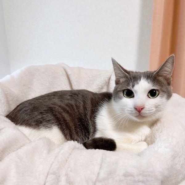 | 特徴(性格など) | グレーx白のハチワレ模様が綺麗なリタちゃんです 保護した時からサラサラ、ツヤツヤな毛並みなので触り心地がとても良いです。 黒寄りのグレーではなく、白寄りのグレーで照明の近くだと若干キラキラしています。 穏やかな子なので、猫パンチしたり喧嘩しません。 慣れると人の近くに来て触らせてくれますが、抱っこはあまり好きではないようです。 短毛種、尻尾はまっすぐです。 |