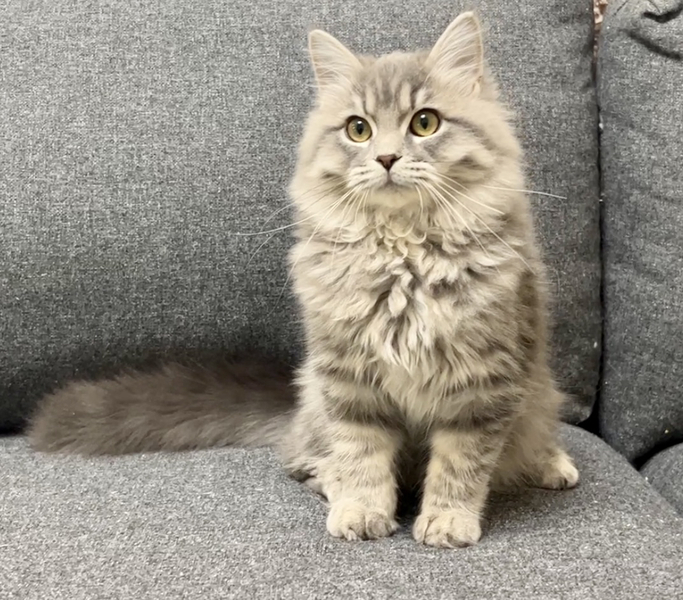 | 特徴(性格など) | サイベリアンとラグドールのミックス 人間だいすき!人間と遊ぶのがとても好きな子です! 毛色はブルーです。 |