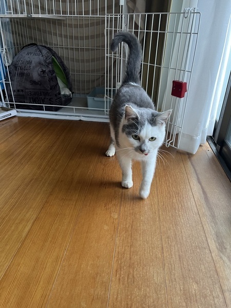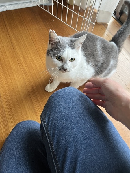 | 特徴(性格など) | グレーと白のパステル調の毛色です 小柄ですがとても元気です (体重3キロ程度) 人も猫も大好きなスリスリゴロゴロの懐っこい子です 人や猫を見ると足をフミフミし始めます |