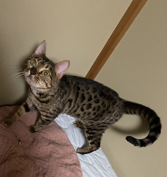 | 特徴(性格など) | ベンガル 他猫とは多少なれるまでに時間はかかります。 1匹飼いがおすすめです。 人慣れしており、甘えっ子です。 |