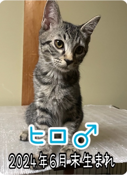 | 特徴(性格など) | キジシロ シッポの先だけ白いです。 人慣れOK食欲旺盛 エイズ・白血病、共に陰性 ユウ♂と兄弟です。 兄弟一緒の方を優先します。 |