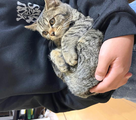 | 特徴(性格など) | 仮愛称:「くう」くん 性格:人なつこい甘えん坊の子猫、人にスリスリで可愛いです。仲間の猫たちと元気に遊んでいます。 医療面:健診済み・駆虫済・ノミダニ予防 初回、ワクチン接種済み 血液検査の結果(エイズ・白血病ともに陰性) 健康状態は良好です。 |