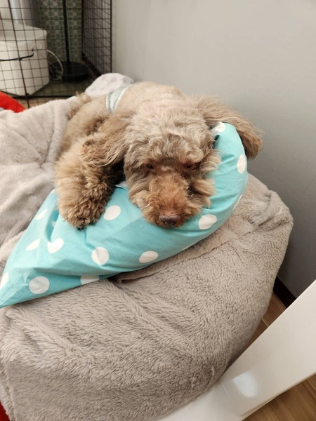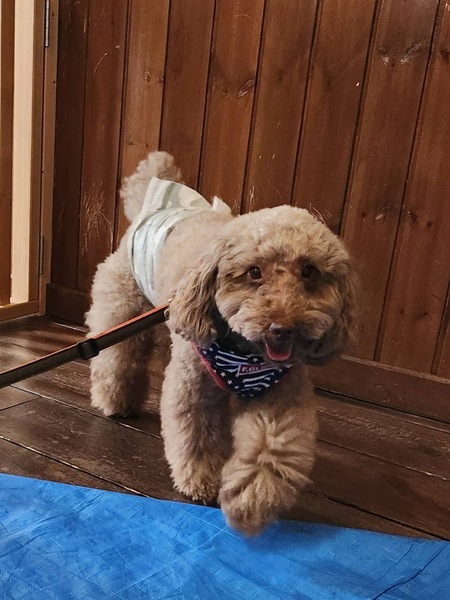 | 特徴(性格など) | 小鉄くん、ミディアムプードル、男の子、2015/5/16生まれ、体重8.5キロ かなりの甘えん坊さんで、家では仮母のストーカーです。就寝時は掛け布団の中に潜り、仮母に体をピッタリつけて寝ます。食いしん坊で、お散歩が大好き。どこまででも歩きます。おうちでは穏やかに過ごしたいタイプで、他犬とは相性があります。怖がりな一面があり、男性や子供に威嚇することがあります。 |