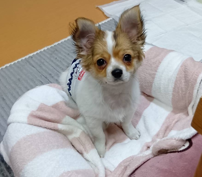 | 特徴(性格など) | ロングコートチワワ 名前は、さんたくん 体重 1.3㎏ ワクチン 1回接種済み レボリューション 済み ※6ヶ月以降去勢手術をお願いします 生後2ヶ月の男の子です。 とても元気で遊び盛りです。 病院で診てもらったら少し斜頸があると診断されました。 普段遊んでいる時はあまり感じませんが、よく見ると斜頸かなと感じる時がありますが生活には全く支障はありません。 今後治療も必要ありませんので、このようなさんたくんにご理解頂けるお家を希望します。 食事が1日3回なのでお留守番の少ないご家庭を希望します。 多頭飼育可 |