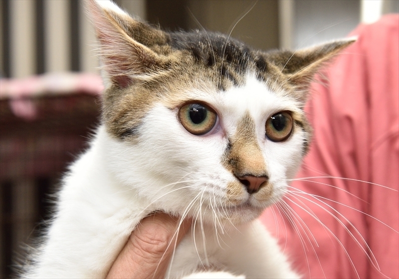 | 特徴(性格など) | 性格・特徴 こうた君♂ 7ヶ月 日本猫(きじ白) お鼻のまわりにくっきりできている“おこげ”模様と、うるうるお目々、眉間にトラ猫特有の“M”があり、坊やちゃんの髪型のような前髪がチャームポイントです。左目の脇がきれいなパトラ様になっています。人さながらに表情が豊富で、幼いながらきりっとした色白な顔立ちというアンバランスが何とも可愛らしいのです。裏白でおなかが真っ白です。 長くまっすぐなしっぽ。 2024年5月生まれ(推定) たくさんの人の愛情を受けてすくすく育っておりますので、屈託がなく、手をさしのべると迷わず人の体を登ってきてゴロゴロと甘える良い子です。 里親様のお宅で早期になれるには、少しの期間、信頼構築できるまでケージ飼いするか、温度や環境が整えられ、障害物や誤飲の危険性のあるものを取り除いた1室でしばらく様子をみるかが最も近道と思っています。 ご希望があれば、ソフトケージ(たたむとぺちゃんこになります。)、屋根付きサークル、ペットケージ等のいずれかを婿入り道具として進呈することも可能です。 トイレ躾済み。室内の猫砂トイレにきちんと排泄できます。 健康状態 良好。 去勢手術済み。5種ワクチン済み(二回)。ノミ・ダニ予防済み。検便(-)、エイズ・白血病(-)、検診済み(著変なし)。医療管理、トイレ躾等の婿入り支度完了しています。 募集経緯に記載のとおり、交通事故の後遺症で弱視ですので、障害物の少ない場所で、誤飲の危険性があるものを取り除いた環境で飼育し、お留守の際はケージで保護していただければ幸いです。 高い場所に置き去りにしたりしますと足を踏み外し落下する恐れがありますのでご注意下さい。 それ以外は、トイレを認識して排泄することもできますし、食事も飲料水もにおいで嗅ぎ分けて自分から摂取でき、人の声のするほうに歩いてくるなど、他の感覚で上手に補って、目が見える子とほぼ遜色のない生活ができます。 |