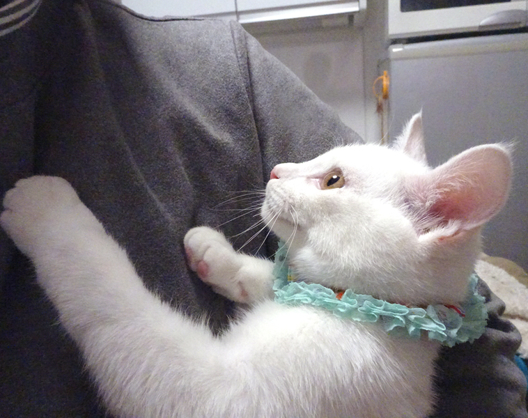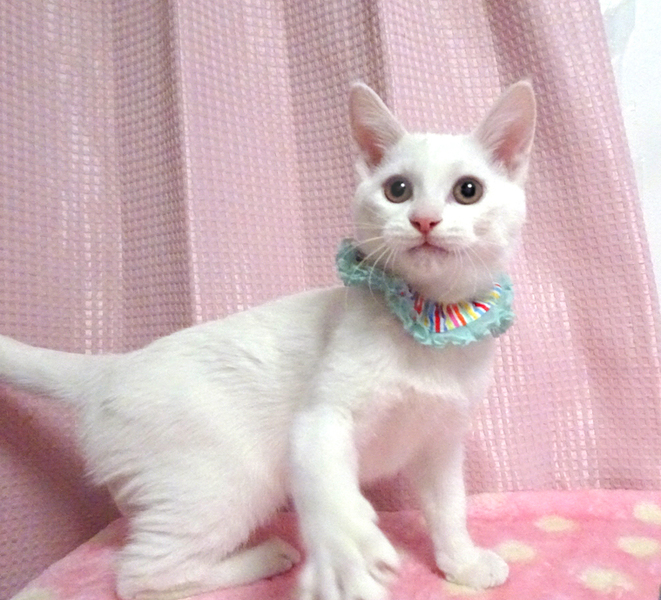 | 特徴(性格など) | 【猫の仮名】 月(つき)くん (担当 松嶋) 【毛色・柄】 白、長いシッポで先がカギ 乳飲み子から育てたので、大変人慣れして抱っこできます♪ 猫を飼うのが初めての方でも大丈夫です♪ 健康状態良好 ●ウイルス検査(エイズ・白血病)陰性 ●ワクチン 2回 ●蚤取り 1回 ●駆虫 2回 ●検便 2回 ●シャンプー 2回 走っても大丈夫なペット可のお住まいで、家族の一員として生涯大切にして下さるご家族を募集しています。 お一人暮らしの方は女性を希望いたします。 ご高齢の方は後継者のおられる方を希望いたします。 |