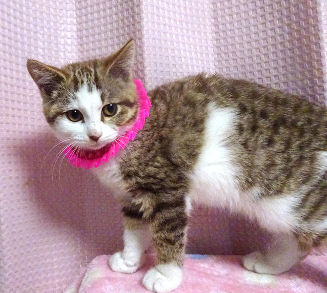 | 特徴(性格など) | 【猫の仮名】 ルビーちゃん (担当 松嶋) 【毛色・柄】 珍しい♪こげ茶のキジ白、モコモコして柔らかい毛並み、長いシッポ 健康状態良好 ●ウイルス検査(エイズ・白血病)陰性 ●ワクチン 1回 ●蚤取り 1回 ●駆虫 2回 ●検便 2回 ●シャンプー 2回 少しビビリで、おだやかなので、猫を飼うのが初めての方でも大丈夫です♪ 走っても大丈夫なペット可のお住まいで、家族の一員として生涯大切にして下さるご家族を募集しています。 まだ小さいので猫だけのお留守番が長時間でないご家族を希望します。 ご高齢の方は後継者のおられる方を希望いたします。 |