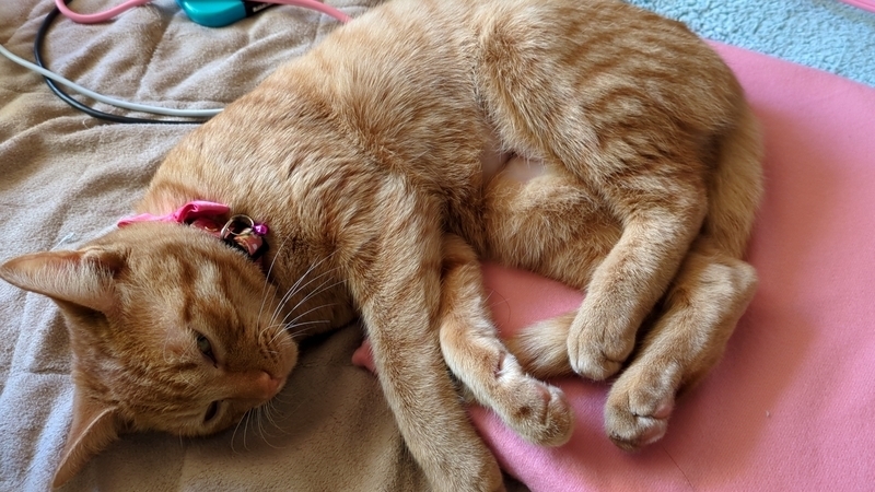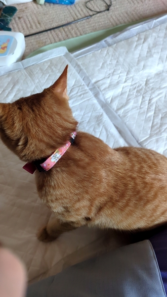 | 里親募集する理由 | 家の付近で生活している野良の茶トラママ猫さんの子ども達のうちの1匹で、 後脚を骨折している様子が見られたため怪我の影響ですごく警戒されているなかなんとか保護しました。骨折してから時間経過してしまったためギプス治療不可の診断をうけ、5mmほど骨がズレたままくっついている状態です。 現在は左右どちらの後脚だったか分からないくらいに動きに違和感はなく、普通に生活できています。 獣医さんからも脚の骨は完全にくっついていることを確認していただきました。 元々幼い頃から人間を知っているので保護しているうちにすっかり甘えんぼうになりました。 1月中にはワクチン接種させる予定です。 我が家にはすでに2匹の高齢の愛猫がおりますため、別部屋で暮らしてもらっていますが愛猫の生活スペースが狭くなってしまっており、少々ストレス状態にあります。今後のことや年齢差を考えると同居させることは難しいため、まろん(仮名)のことを大切に最期まで飼うことのできる里親さんを探しています。 |