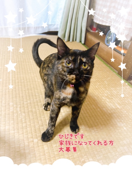 | 里親募集する理由 | 個人で保護活動をしていて、 生後2ヶ月頃外で保護して、里親さんを募集してます。 |