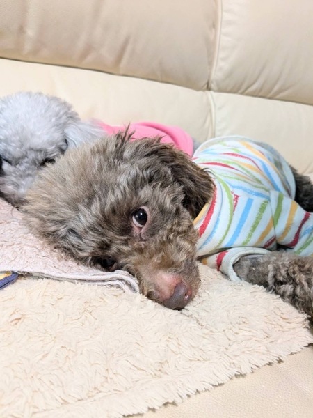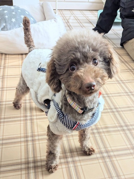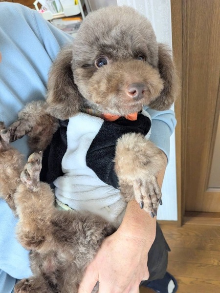 | 特徴(性格など) | ■特徴(仮の名前︰ノエル) トイプードル♂ 推定8歳 体重3.8キロ ■性格・暮らし ・体のどこを触っても大丈夫です。 ・性格は大人しく、怖がりですが慣れた人にはとても甘えん坊です。 ・他犬とは問題なく過ごせます。 ・トイレや散歩、留守番は練習中です。 ■今までに終わっている医療行為 ・混合ワクチン接種 ・フィラリア抗原検査(ー) ・耳ダニ検査(ー) ・血液検査 ・去勢手術 ・歯石除去・抜歯 ・マイクロチップ装着 ■今後行う予定の医療行為 ・なし |