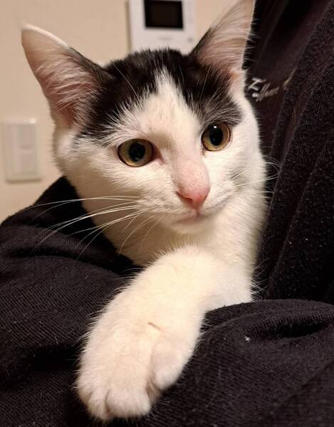 | 特徴(性格など) | 仮名: そらくん(オス) 毛色: 白黒 性格: 人馴れはしています。 初対面でも抱っこはOKです。 他の猫に対しては少し臆病な面も見受けられますが、馴れるのは早いと思います。 初めて猫と暮らす人でも問題はないと思います。 同時に保護した人馴れ抜群の妹猫うみちゃんと一緒のご縁を希望します。 お届けは、なるべく千葉県内か近郊を希望します。 検便済 駆虫済 3種混合ワクチン2回済 猫エイズ・白血病ウィルス検査はともに陰性です |