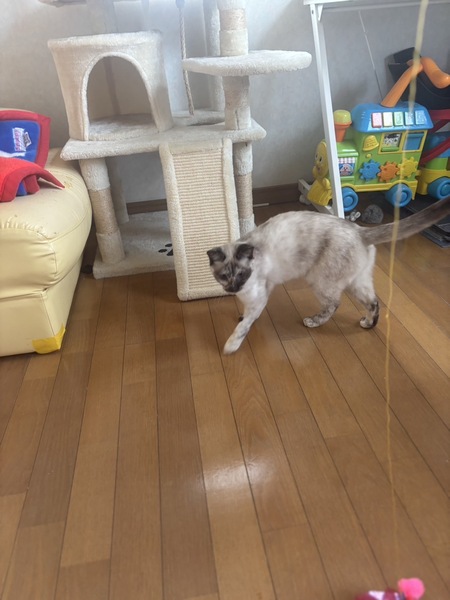 | 特徴(性格など) | シャム柄の人馴れした遊び大好きな女の子です 抱っこやすりすりが大好きです、爪も切らせてくれます ゲージ無しでも飼える位慣れています |