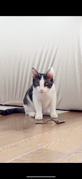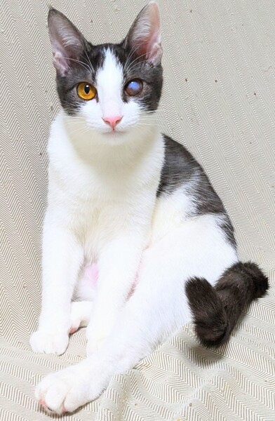 | 特徴(性格など) | 好奇心旺盛で良く戯れて遊んでいます 触られるのが好きでゴロゴロ甘えてくれます♪ 水墨画みたいな色の珍しいハチワレちゃんです 目は保護時すでに外傷を負っていて見えなくなってしまってましたが、走ってジャンプして遊ぶし、他の猫ちゃんと何ら変わりなく元気です |