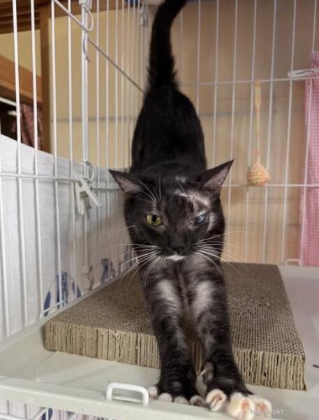 | 特徴(性格など) | ◆パブちゃん ハブに噛まれた傷が癒えたスリゴロ女の子 ○1〜2歳くらい(2025年1月時点)の黒地にグレー縞と白の柄の女の子です。 ◯しっぽは短めでまっすぐです。 ◯顔をハブに噛まれて怪我をしていたところを保護され、治療後傷は癒えましたが、右目は白濁が残っています。生活には全く支障はありません。 ◯人が大好きで撫でるとスリスリしてくれます。 ★ワクチン接種済み、不妊手術済み。 ★猫エイズ、猫白血病ともに陰性。 ★顔をハブに噛まれて怪我をし、治療を受けて回復しましたが、右目に白濁が残っています。 ☆単身、高齢のかたはご相談ください。 ☆★☆★☆★☆★☆★☆★☆★☆★☆★☆★☆★☆★☆ 2月23日(日)荏田にて譲渡会開催! ◎場所・・「島忠ホームズ荏田店」 神奈川県横浜市青葉区荏田西1ー3ー14 田園都市線「江田」駅より徒歩約7分 246号線江田駅交差点そば ◎日程・・2月23日(日)(雨天決行) ◎時間・・13時から16時 【15時30分受付終了】 (会場に利用可能な無料駐車場がございます。そちらをご利用くださいませ。) *参加の際はアルコール消毒のご協力をお願いいたします。 *混雑状況により、中止させていただく場合がございます。 ※参加予定の犬猫は体調により参加できない場合があります。ご了承ください。 ☆★☆★☆★☆★☆★☆★☆★☆★☆★☆★☆★☆★☆ |