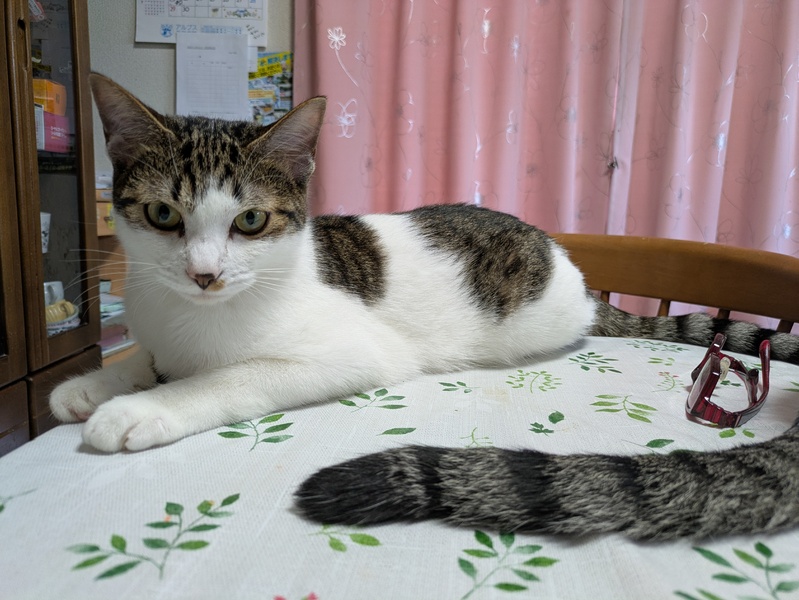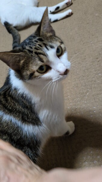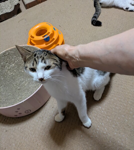 | 特徴(性格など) | 白クロトラぶちかな とっても甘えん坊男子 お膝大好き 抱っこも出来ます とても元気に毎日運動会です |