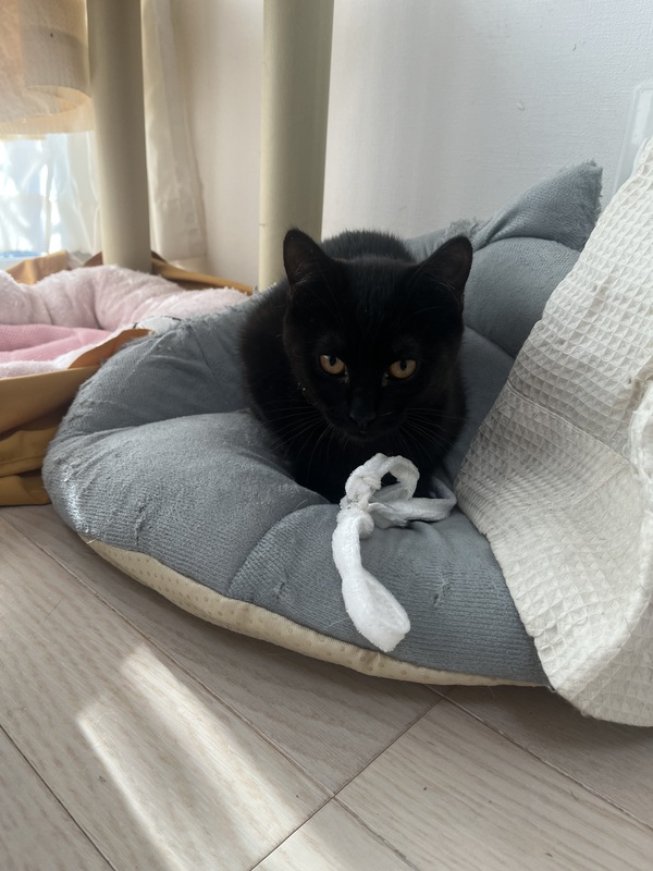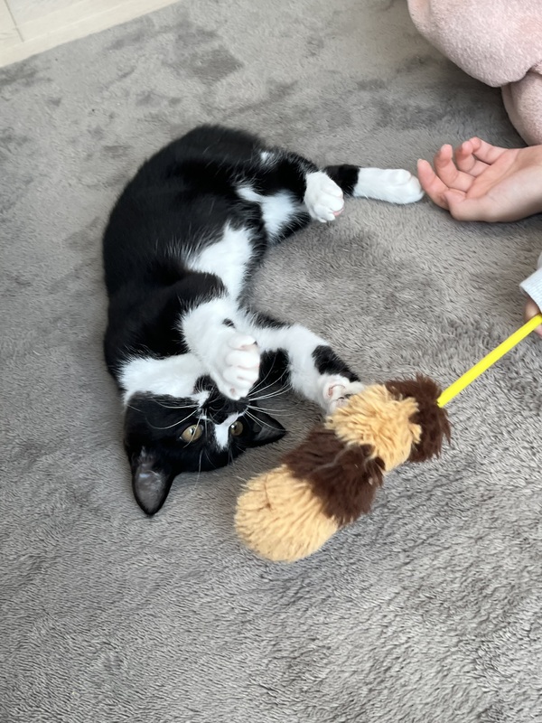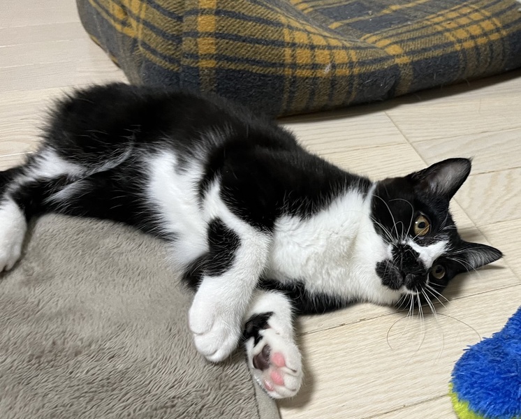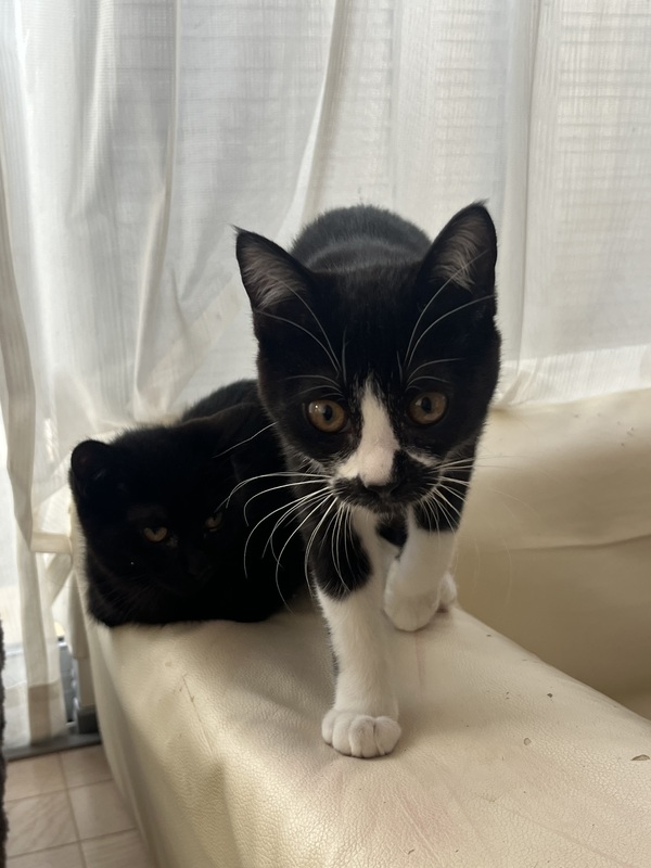 | 特徴(性格など) | 白黒→男の子。やんちゃで遊び好き。甘えん坊。他の猫や人のそばにいます。ご飯が食べたくなったら鳴いて寄ってきます。 黒→女の子。遊び好き。猫も人も大丈夫。1人でいることも平気。賢い。 |