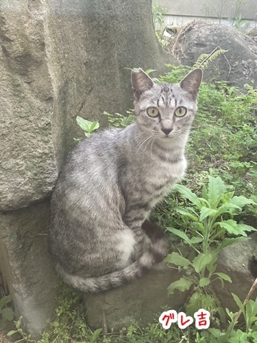 | 里親募集する理由 | 私共は、海辺に棲む外猫たち約50頭や事務所の猫食堂に通ってくる猫たちのお世話をしております。 グレ吉ちゃん(仮名)は猫食堂に通ってくる猫のひとりで比較的人慣れしていましたので、 出来ればおうちの中で幸せに暮らしてほしく、また事故などに遭う前にと保護に至りました。 |