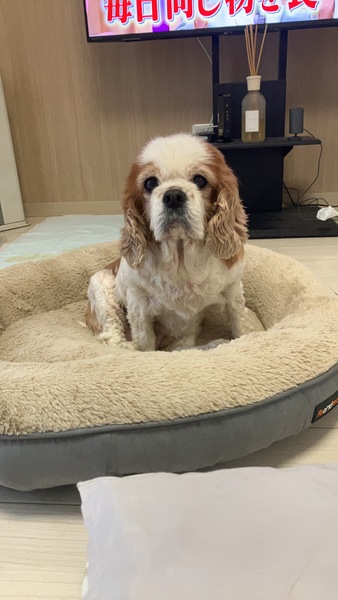 | 特徴(性格など) | ブレンハイムのぽっちゃりさんです。 性格は非常におっとり、マイペース、穏やかさんです。 他のワンちゃんとの挨拶も非常に上手にできます。 皮膚が弱いため現在獣医にて治療してもらっています。 右の後ろ足が弱く、力をかけて体勢を長時間維持するのは難しそうですが散歩はできています。 こちらに関しても受診しておりますし、サプリメントを取っています。 非常に正確としてはキャバリアの特徴そのものといった感じでしょうか。 |