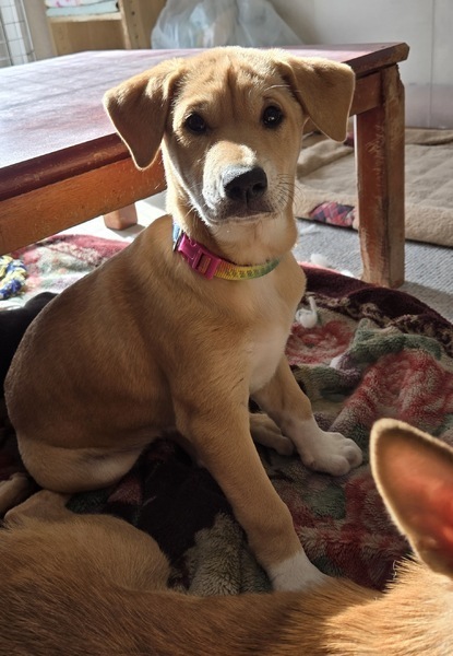 | 特徴(性格など) | 【愛称】 ウキウキ 【犬種】 ミックス 【性別】メス(不妊手術済) 【年齢】推定4ヵ月(2024/10/10頃生れ) 【毛色】 うす茶・白 【体重】12.3kg(2025/2/4現在) 【状態】混合ワクチン接種済、駆虫済・検便(―)、ノミダニ駆除済、マイクロチップ装着済 【人馴】 問題なし 【預かり場所】 神奈川県座間市 【日記】 野本利恵 https://www.instagram.com/nomototoshie/(インスタ) 【経緯】 茨城県にて飼い主のいない犬が出産 【性格・その他】 活発で明るい女の子です。 生後2か月までしっかり者のお母さん犬に育てられ兄妹と過ごしてきたため情緒が安定している子犬らしい子です。元気一杯に子犬どうしでじゃれ合って遊んでいます。 一緒に生活している大きな犬に自分から「遊んで」と飛びついて行きます。叱られてもメゲナイで遊びに誘っています。 排泄はシートにしていますが、失敗することも多いです。「嬉ション」が多めですので、根気よく教えていただきたいと思います。 食事は子犬用のカリカリフードを食べています。早食いなので食器の工夫が必要だと思います。 好奇心旺盛で目についた物は噛みます。トイレシートや壁紙、家具など、人の手も噛みます。歯が生え変わるまでは色々噛みますので、特に人の手を噛んではいけないことを教える必要があります。 誤飲誤食には要注意です。カミカミオモチャ、引っ張りっこオモチャも大好きです。お散歩練習はこれからです。リードで引っ張られることには抵抗しますので少しづつ慣らしていくことが重要です。 躾は全く始めていません。楽しく基本練習から始めてください。他犬は好きですが慎重です。慣れてしまえば元気に遊べます。 「いぬ助け」HPを良く読んでいただき、Wリード、GPS・迷子札装着、その他「いぬ助け」に賛同して頂ける方に「ウキウキ」をお願いしたいと考えています。 中型犬程度に成長すると思いますが、どの程度大きくなるか分かりません。体高体重制限のあるお住まいの方は不向きだと思います。どんなサイズに成長したとしても今後15年以上先も適切なお世話ができるかどうか、ご一考いただいてからご応募ください。 成長後も引き続き完全室内飼育で、お留守番がなく、定期的なワクチン接種やフィラリア予防などの健康管理、脱走・逸走防止への細心の注意、近況報告を必ずお約束していただける、関東圏内のできるだけ遠方で無いご家庭で、「ウキウキ」を終生家族の一員として大切にして下さる方からのお問合せをお待ちしております。大変申し訳ございませんが、主にお世話をされるのがご高齢の方となる場合、単身でお住まいの方はお断りさせていただきますのでご了承ください。 【お申し込み】↓よくお読み下さい↓ 特徴、譲渡条件や譲渡までの流れをよくお読み頂き、 直接 いぬ助けのホームページよりアンケートを送って下さい。 ↓ → https://www.inudasuke.com → 里親希望アンケート (こちらのサイトのア ンケートではお時間を頂く場合がございます。 直接いぬ助けのHPよりお願いします。) 【いぬ助けSNS】 いぬ助けHP → https://www.inudasuke.com フェイスブック→ https://www.facebook.com/inudasuke/ インスタグラム→ https://www.instagram.com/inudasuke/ |