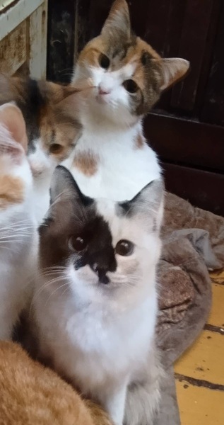 | 特徴(性格など) | 白茶、白、茶トラ、三毛、黒白、白黒トラ、黒 遊び好き、人懐っこい子が多いです。 | ||