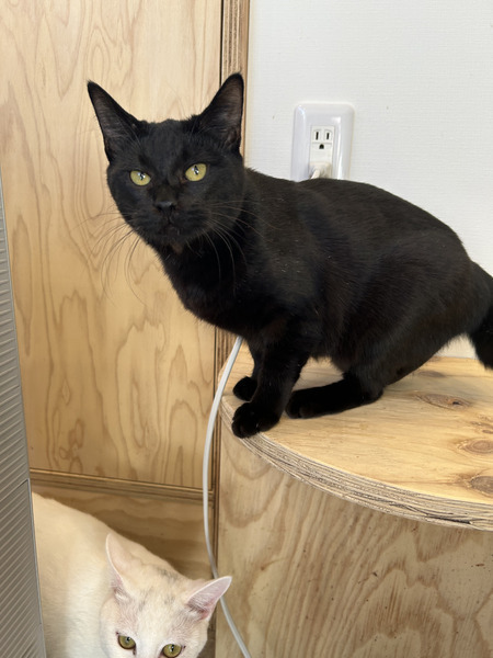 | 特徴(性格など) | とても懐っこい女の子です。 抱っこが大好きで、いつも膝に飛び乗ってきます。 他の猫と膝の奪い合いになることも・・・ おもちゃ遊びも大好きで新しいおもちゃには興味津々! 他の猫とよく遊びます。 真っ黒かぎしっぽです。 |