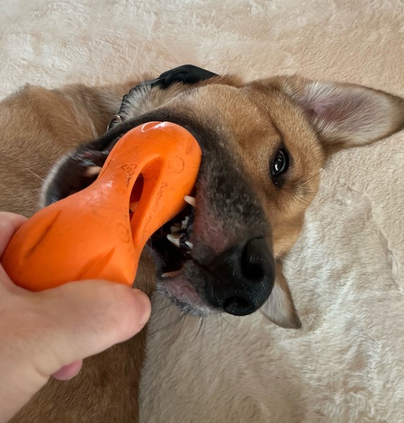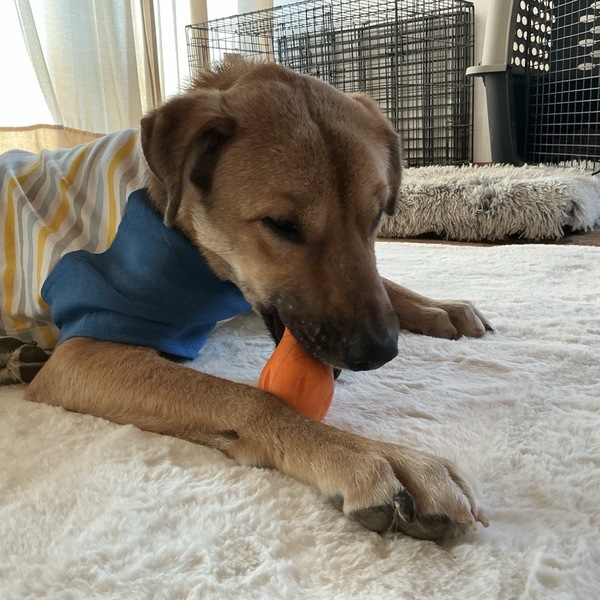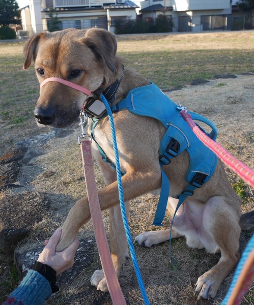 | 特徴(性格など) | 【愛称】 ダリオ 【犬種】 ミックス 【性別】 オス(去勢手術済) 【年齢】 推定3歳 【毛色】 茶・黒 【体重】 24kg(痩せています) 【状態】 混合ワクチン・狂犬病予防接種済、ノミダニ駆除済、駆虫済、検便(-)、マイクロチップ装着済、フィラリア(-) 【人馴】 時間がかかります 【預かり場所】 千葉県市川市 【日記】 マルコが教えてくれたこと https://ameblo.jp/nakahimimira/ minna daisuki futoshi chan(Instagram) https://www.instagram.com/minna_daisuki_futoshi_chan/ 【経緯】 茨城県動物指導センターより引き取り 【性格・その他】とても賢く、警戒心の強い男の子です。 人と暮らした経験がなかったため、普段お世話をする預かり母に馴れるまでにも数ヵ月かかりました。今では大きな体をグイグイと押しつけるようにして甘え、気づくと足元で寝ています。ブラッシングや爪切り、ハーネスの装着、お散歩後の足拭きなど、預かり当初は断固として拒否していたことも問題なくできるようになりました。学習能力・身体能力ともに非常に高く、力も強いです。ダリオをしっかりコントロールするには、強いリーダーシップと隙のない堅牢な逸走・脱走防止対策が必要です。 室内完全フリーで暮らしています。 他の預かり犬たちに対しては少々横柄な態度を取ることがあり、ベッドやオモチャを譲るよう圧力をかけます。食べ物をめぐる小競り合いからケンカになったこともありますが、現在は自分の順番まで待てるようになりました。預かり宅の先住犬に対してはケンカを売ったり大きな態度を取ることはなく、怒られても逆らいません。 食事は1日2回ドライフードに手作りのトッピングをしたものを食べています。食欲は非常に旺盛です。チキンアレルギーがあります。 排泄は外でも室内でもできます。L字にしたトイレシーツ上にほぼ完璧に排尿できますが、新しい環境ではまた練習が必要になるかと思います。 お散歩には積極的に行きたがるようになりました。男子学生の集団とすれ違う時や元気に遊ぶ子供たちのそばを通り抜ける時など、怖いと思うと逃げ腰になることもありますが、以前のようにパニックになることはなくなり、気持ちが落ち着けばまた歩き出します。 ダリオの心を開く努力を根気強く続け、ダリオを力強く導いてくださる方にお願いしたいと希望しています。また、迷子にさせないための慎重な行動をご家族全員が徹底できるかどうか十分に話し合ったうえで、里親希望のお申し込みをしていただくようお願いいたします。 引き続き室内飼育で、フィラリア予防やワクチン接種・毎年の狂犬病予防接種など定期的健康管理に努め、脱走・逸走防止に細心の注意を払ってくださることをお約束していただける関東近県のご家庭で、終生家族の一員としてダリオに愛情をたっぷり注いでくださる方からのお問い合わせをお待ちしております。 |