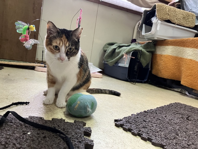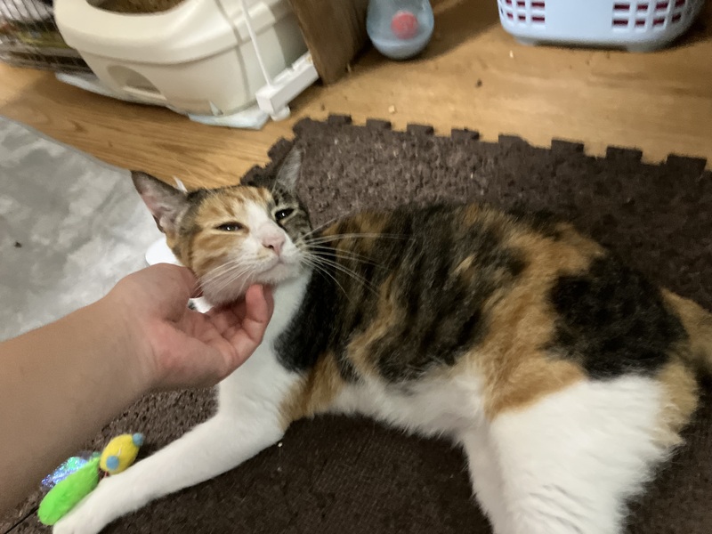 | 特徴(性格など) | まみーは三毛猫の女の子、年齢は3歳半前後かなと思われます。 まみーは基本マイペースでのほほ〜んとしていて、のんびりと気ままに過ごしております。とっても人懐っこく、初めての人と会ってもほとんど警戒しなくなってきています。人に対して安心安全と思えているのだろうなと思います。 ご飯が欲しい時にとっても可愛い甘えた声で鳴いてくるのが、きゃ〜ってなって心を鷲掴みされちゃいます。 病院に行く時とかも怖くて不安なようで、どこからそんな声出るの?そんな一面もあるの?って感じで、またとっても可愛い声で鳴くので、思わず可愛すぎるってキュンっとなっちゃいます。 遊ぶのも大好きで、おもちゃにすぐ反応してくれて、嬉しそうに楽しそうに遊んでるところもとっても可愛いんです。 床のクッションマットに寝転ぶのも好きで、そこにごろ〜んとしていたり、重なったクッションマットの中に潜ったり、クッションマット自体で遊んだりと大好きなのが伝わってきます。 日中は人が見える位置にいつもいて、たまに自ら近くにナデナデされに近寄ってきたりして、目を細めて「眠たいんだにゃ〜」って柔らかな表情をしてまったりしてるところもまた可愛くて、とってもほっこりとした気持ちにさせてくれます。 食事は以前はゆっくり食べる方で、一度にたくさん食べると吐き戻してしまう為、本人も合間を開けて食べたりしていましたが、最近は食い付きも良くなり、ペロリと最後まで全部食べらようになりました。 ナデナデも大好きで、目を細めてほんとに気持ちよさそうな柔らかな表情をして、気持ちいいんだろうなぁってのがとても伝わってきます。 私が別の場所にいると、近くに寄ってきてスリスリしてきたり、甘えた声で鳴いてきたり、甘えん坊で無邪気でまみーのとっても可愛い鳴き声に是非癒されてみてください。 そして、まみーちゃんはエイズキャリアでもあります。エイズを発症してるわけではないですが、ウィルスを持ってますよという事です。ですが、エイズは感染率も極めて低いウィルスで、ウイルスを持っているすべての猫が発症するわけではなく、キャリアであっても室内で穏やかにのびのび過ごさせてあげる事で、ずっと発症せずに、そのまま天寿を全うする猫ちゃんの方がほとんどなんだそうです。 エイズとは関係なく全く別の病気で亡くなる子の方が多く、陽性・陰性で平均寿命に差がないとの統計も出ているそうです。 エイズキャリアが気になる方は、1匹飼いや同じ陽性の子と飼うか、部屋を別にする等をご検討してみていただいてはいかがでしょうか。 エイズキャリアだから素敵な家族に巡り逢えないなんて、とっても悲しい事です。エイズキャリアでも関係なく、ご理解のある心温かく、心優しい素敵なご家族様に出会えることをまみーちゃんと心より願い、お待ちしております。 まみーちゃんが安心していつでも家族に甘えられてたっぷり可愛がってくれる、のんびり楽しく幸せに暮らせる優しい素敵なご家族さんに出会えたらいいなと心から願っております。 そして、きっとまみーちゃんが貴方様の癒しになってくれると思います。 どうぞ、まみーちゃんを宜しくお願い致します。 ノミダニ虫下し済、さくら耳カット有り、猫エイズキャリア+、猫白血病- |