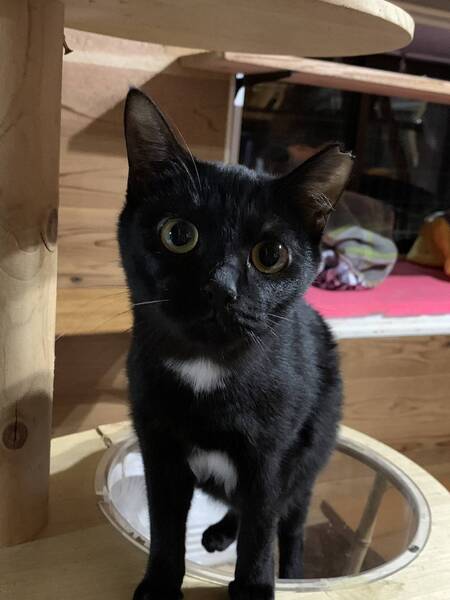 | 特徴(性格など) | 抱っこも大好き。人とも猫とも仲良くできる子です。 お腹と胸にある白毛がかわいい甘えたさんの女の子です。 |
