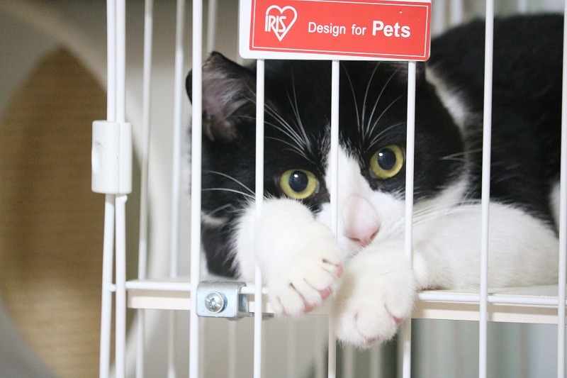 | 特徴(性格など) | 白黒ハチワレ男の子でひとり遊びが大好きです。昼間ケージの中でお留守番も出来ます。あまり好きではありませんが抱っこも出来ますよ。 | ||