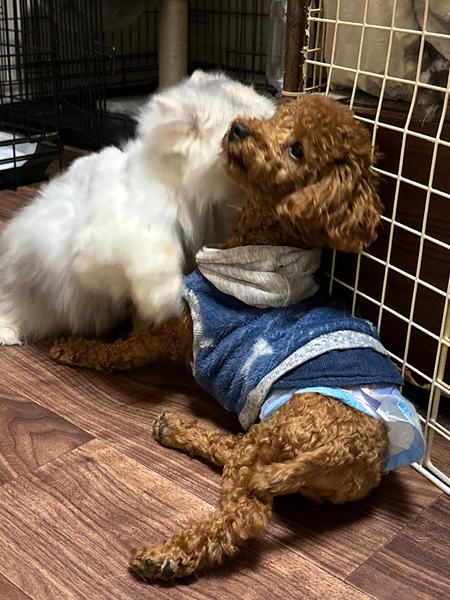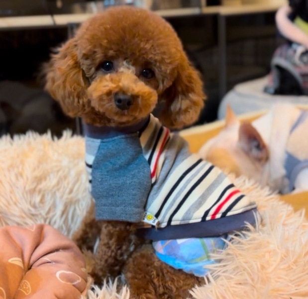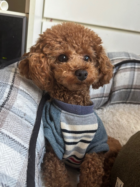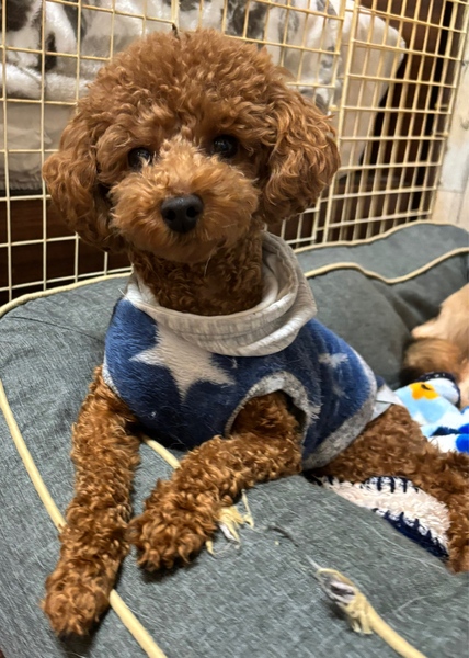 | 特徴(性格など) | 2.3キロのトイプードルの男の子です。 推定1才なので元気な子です⭐︎ 脚の手術をしましたが今は元気に過ごしております。 物音に敏感に吠える所はありますがすぐに吠えやみます。 トイレはマーキング癖があるのでマナーベルトをしております。 留守番はケージの中で過ごす事ができます。 若いのでまだまだイタズラをする事もありますが元気で甘えたな子で攻撃性はありません。 https://www.instagram.com/chobico_0301/ |