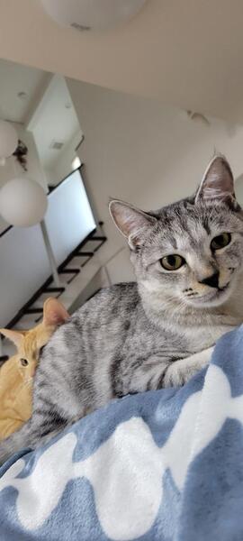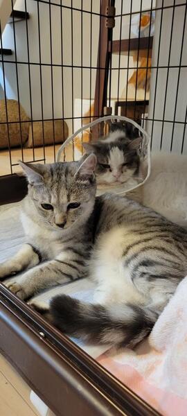 | 特徴(性格など) | 病院に入院中にはもうすでに人間への緊張感は解け、 人の手にゴロゴロ甘える様になっておりました。 そうなったら元来の甘えん坊男子が開花したのか、 預かりボランティアさんのお家でも、 周りがハラハラするほど元気に遊び、気持ちの良いぐらいの食べっぷり。 先住のお姉さん猫が子守を買って出てくれ、それはもう明るく楽しく過ごしています。 おそらく交通事故か、もしくは車のエンジンルームに潜り込んでしまってできた怪我のことなど すっかり忘れて人を信頼し、愛し、家族になってくれるような子です。 アメリカンショートヘアを彷彿とさせる美しい柄。 家族中を虜にする明るい性格。 先住猫達にも愛され、アイドルのように過ごしております。 顔の怪我はすごいスピードで肉が盛り上がってきて回復中です。 もしかしたら去勢のタイミングで手術をしたほうが回復が早いかもしれませんが 現在経過観察中です。 |