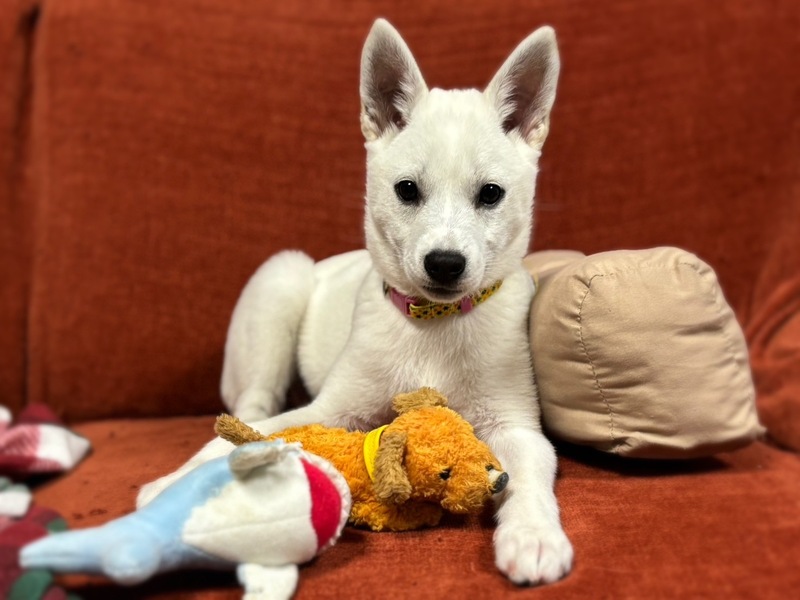 | 特徴(性格など) | ●特徴● 【名前】あのん 【生年月日】推定2024年12月15日頃生まれ 【種類】MIX 【毛色】ホワイト 【性別】メス 【避妊】未(適齢になり次第,飼い主様で必ずお願いします) 【ワクチン】2回済 【駆虫】済 【健康状態】良好です 【性格】人懐っこく、好奇心旺盛で活発です!とても甘えん坊で人のそばに居て後ろをついて歩いたり、常に隣にいます。 とにかく元気で寝てる時以外はずっと走り回ったりおもちゃで遊んでいます(^^) 運動神経抜群でなんでもできます! 他の大きな犬を怖がらなかったり、現在預かり宅の先住犬には怒られても、少ししたらまた遊ぼうと飛び跳ねています。野犬ならではの犬好きな性格です! 【トイレ】ほぼ完璧です!極たまにシートからはみ出るときがあるくらいです。 【ケージ】就寝時やお留守番はケージでしています。 眠くなると自らケージに戻ってます。 |