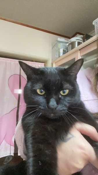 | 特徴(性格など) | 真っ黒の柄でまん丸おめめの黒猫です。 とても賢く、言葉をよく理解してくれます。 鍵しっぽです。 避妊もすんでおり発情期がありません。 とても健康です。 |