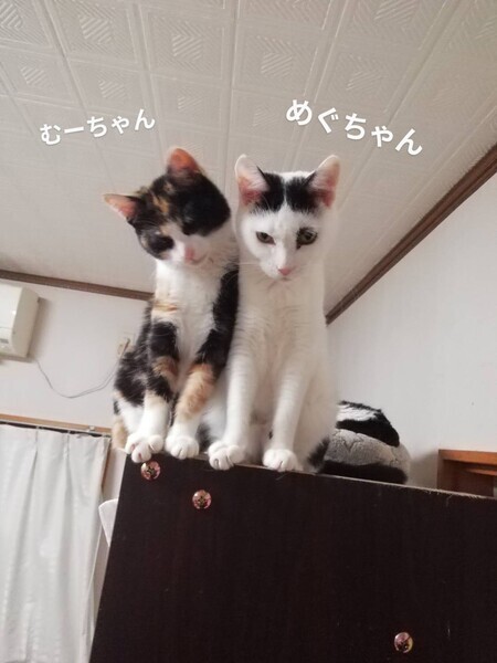 | 特徴(性格など) | 白に黒の水玉がおしゃれなめぐちゃん。 大きな声で鳴くことはあまりなく、足元でコロンコロンと転がって見て見てアピールする 甘えん坊さんです。 写真写りが悪いけど片目の黒がおしゃれポイント。 避妊手術後少し体型が丸くなったけど小柄な女のコです。 |