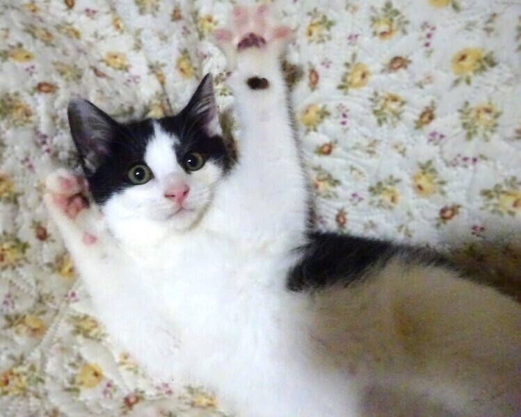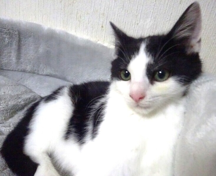| 特徴(性格など) | 仮名: かけるくん(オス) 毛色: 白黒、尻尾長い 性格: 割合、物怖じせずに活発で、ご飯も良く食べ催促もします。兄弟ののぼるくんと一緒によく遊んでいます。ケージに近づくだけで側に寄ってきますが、スリスリ甘えてくるかというとそうでもなく、程よい距離感で側にいる感じです。 子猫同士では遊びますが、まだ大人猫との接触がなく、上手く付き合えるかわかっていませんが、そばを通る大人猫をみて興味津々で見ていますので、大丈夫かと思います。 威嚇もなく抱っこ出来て、爪切りや薬も大丈夫です。 お届けは千葉県内で、千葉市幕張から車で1時間位を希望します。 検便済 駆虫済 3種混合ワクチン済 猫エイズ・白血病ウィルスはともに陰性です |