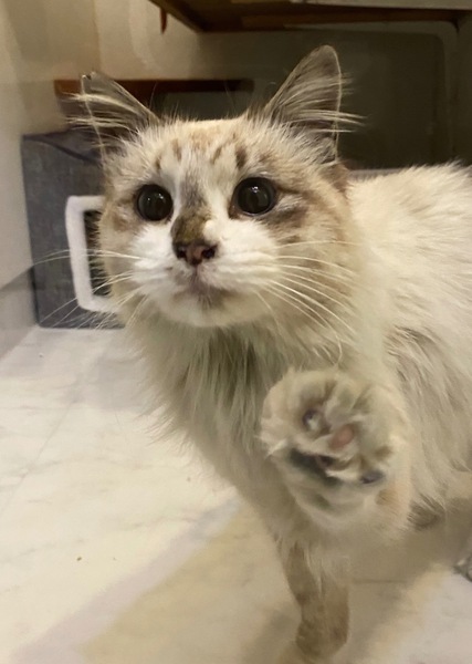 | 特徴(性格など) | 人馴れ200%と言っていいくらいスリスリ懐いてます。 長毛で洋猫が入っているような風貌で、顔は見ての通りとても可愛いらしいです。 車に轢かれたと思われるケガにより病院搬送時には尻尾が壊死してしまっていため断尾しました。(わかりにくいかもしれませんが写真5枚目参照) |