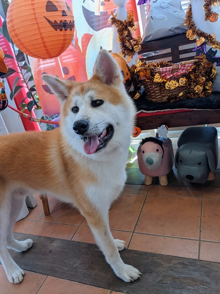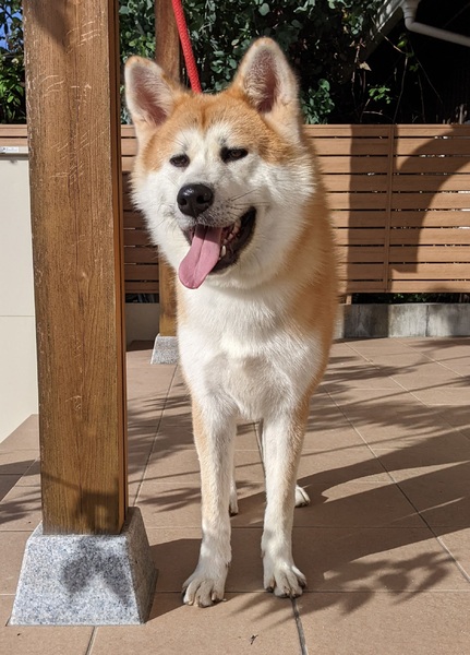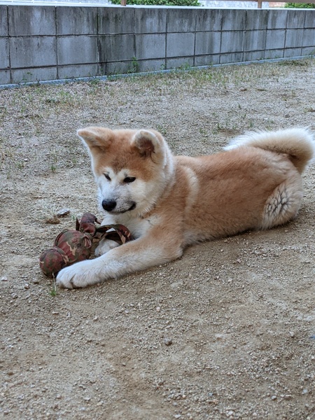 | 特徴(性格など) | 赤毛で巻き尾の犬です。 表情は豊かで、うれしい表情や表現をします。ドッグランではじめて会った犬と仲良く遊べました。賢くてとても愛らしい犬です。新しい所や物音、人や犬などにおくびょうなところがあります。 現在体重は27kgで、よく食べて元気です。アレルギーは今のところ見られません。 |
